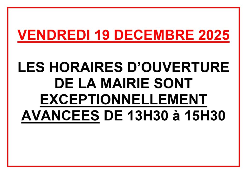AVANCEMENT DES HORAIRES DE LA MAIRIE – VENDREDI 19 DECEMBRE 2025