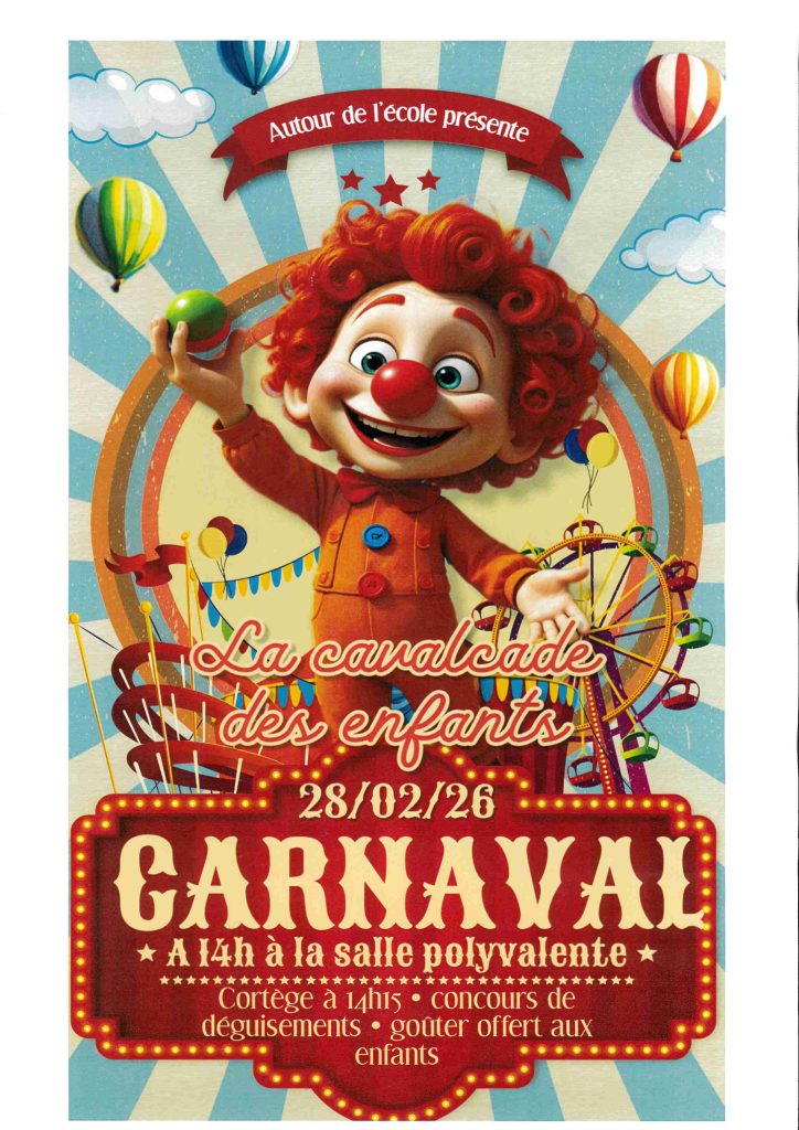AUTOUR DE l’ECOLE : CARNAVAL DES ENFANTS – SAMEDI 28 FEVRIER 2026