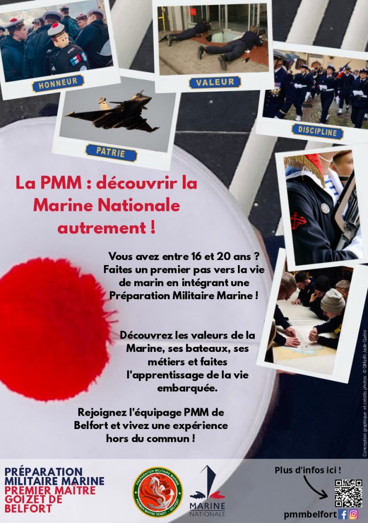 “La Marine nationale propose aux jeunes de votre commune, âgés de 16 à 21 ans, de rejoindre la Préparation Militaire Marine (PMM) de Belfort.