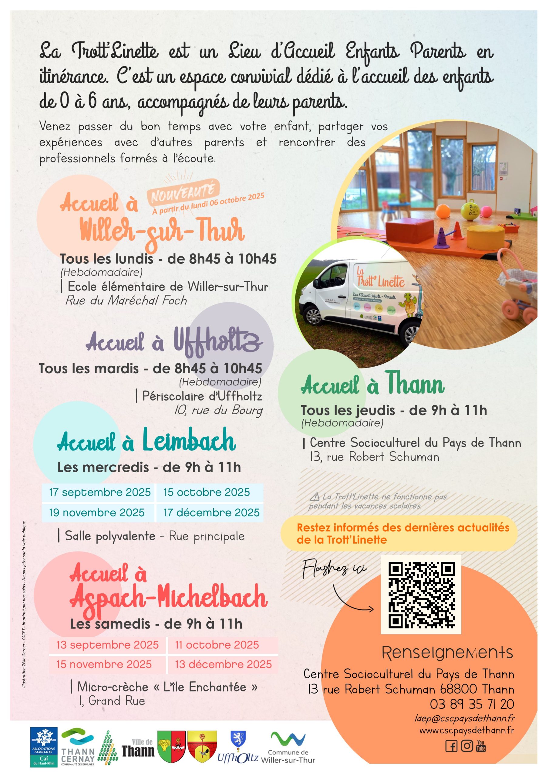 La Trott’Linette est une action d’accompagnement à la parentalité proposée par le Centre Socio Culturel du Pays de Thann.